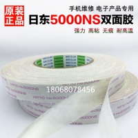 日东5000NS是日东双面胶中一种,属于无纺布基材双面胶,由无纺布双面涂布丙希酸胶制成,规格为: 1200MM*50M*0.16MMT,颜色为白色;胶带强度大,不会发生胶带破裂的情况,也无剥离去除破碎胶带的繁琐作业;采用不易残留粘胶的粘合剂,易模切日东5000NS
